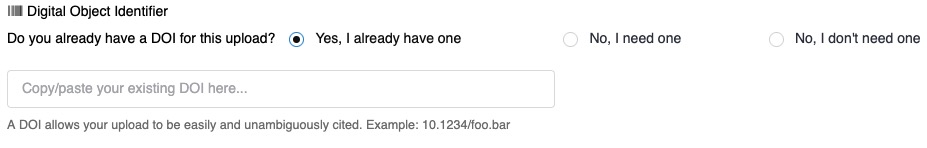Because metadata is submitted to DataCite when registering a DOI, you cannot request a DOI for uploads that are fully restricted.