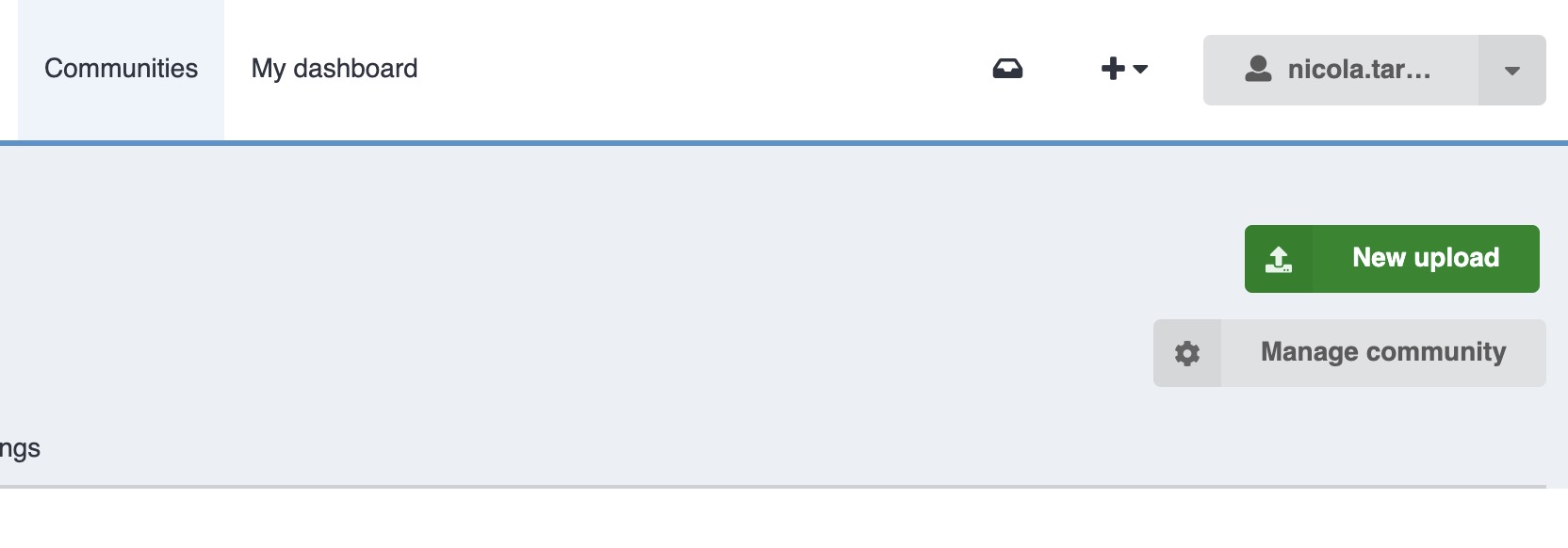 The easiest way to start a new upload is to first choose the community where you want to deposit the item. Read more about communities here.