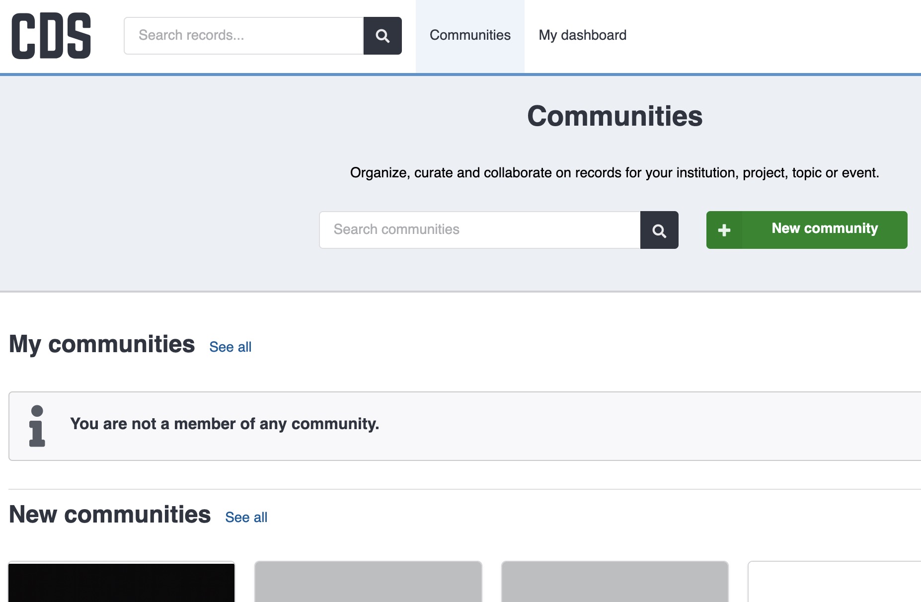 You can view the communities you manage or search for other communities from the Communities menu in the top header: