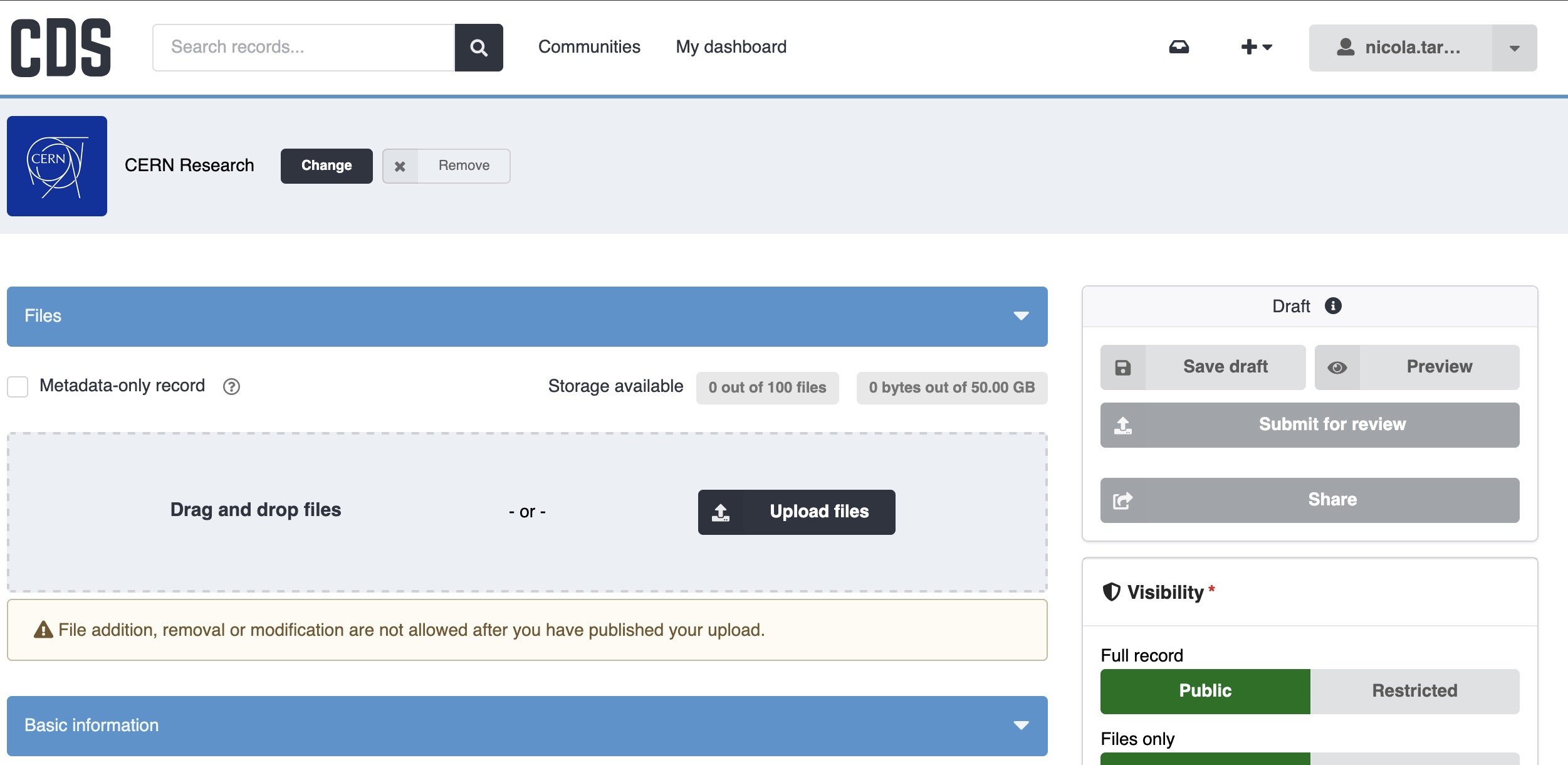 - CERN fields: Add CERN-specific metadata such as experiment, accelerator, department, or project identifiers when applicable.